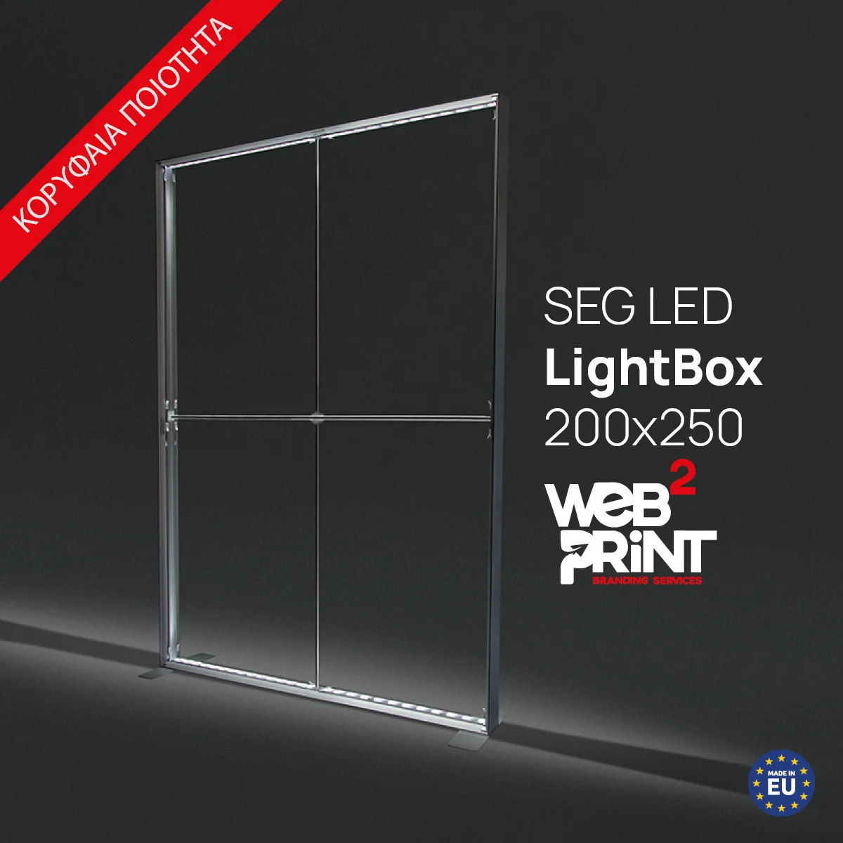 Το LED LightBox 200×250 είναι διπλής όψης, διασφαλίζοντας ότι τραβάει την προσοχή των περαστικών.